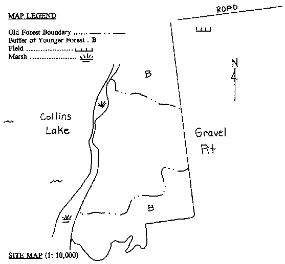 PLANT LIST - SITE STATUS: C (Common) S (Sparse) R (Rare) Pinus strobus (White Pine)........................................C Acer saccharum (Sugar Maple..................................C Fraxinus americana (White Ash)..............................C Prunus serotina (Black Cherry).................................R Quercus rubra (Red Oak)..........................................S Tilia americana (Basswood)......................................C Betula papyrifera (White Birch)..................................S Populus grandidentata (Large-leaved Aspen)............R Quercus alba (White Oak...........................................S Ostrya virginiana (Ironwood).....................................S Betula allegheniensis (Yellow Birch)...........................R Fagus grandifolia (Beech)..........................................S Acer rubrum (Red Maple)..........................................R Prunus virginiana (Choke Cherry).............................S Pteridium aquilinum (Braken Fern)............................C FAUNAL OBSERVATIONS: White-breasted Nuthatch, Brown